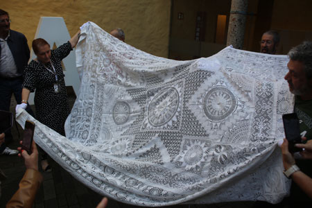 Puis, soudainement il y eut un attroupement dans le patio du musée : une grande nappe était déployée sous les exclamations admiratives des visiteurs.