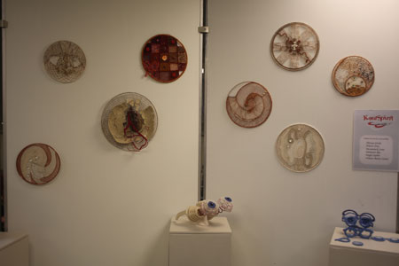 A l'étage se trouvaient de "vrais trésors" en dentelle contemporaine. Ce qui était surprenant, c'était la représentation de lunettes en dentelle. Tout était réalisé par le nouveau groupe de Rya Demeyere qui est à la tête maintenant de Kantact anciennement dirigé par Martine Bruggeman.