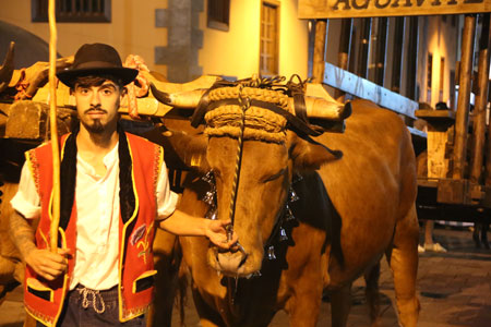 Le samedi soir, il y avait une procession incroyable en l'honneur de la dentelle. Chaque groupe défilait puis s'arrêtait au centre de la place pour évoluer soit en dansant, soit en chantant. Le plus innattendu du spectacle était certainement les boeufs tirant des bateaux. C'était vraiment un spectacle grandiose.