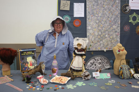 Elle se cache sous sa coiffe, mais on reconnait Florence de Reims. Elle était accompagnée de son mari, tous deux en costume de vendangeurs de champagne et de Joffrey créateur de fuseaux en résine.
