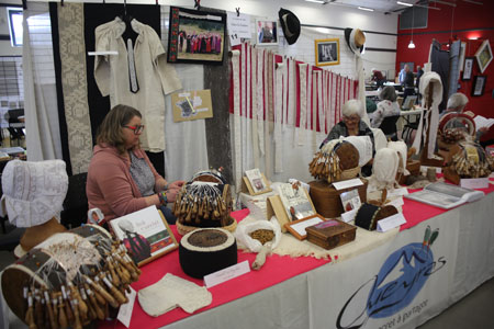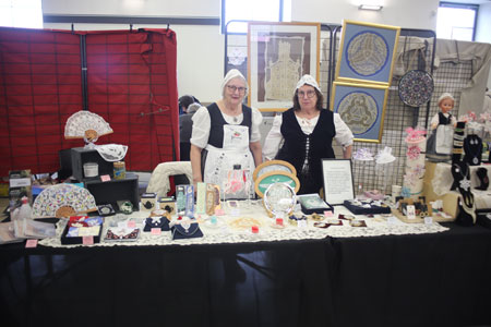 Et voici le Conservatoire de Luxeuil, toutes deux en costume local. Sur leur stand des bibis et un éventail en dentelle de Luxeuil.