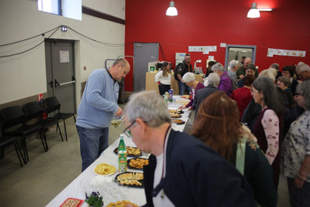 Samedi midi, c'est l'heure de l'inauguration. Bien que ce soit un week-end d'élections, Lucette a pu avoir la grande salle de la Cavalerie. Fernand Burkhalter, maire sortant, a félicité Lucette et son équipe pour ce superbe couvige. Après les discours, le pot de l'amitié fut servi accompagné de diverses mignardises réalisées par les dentellières de l'association.
